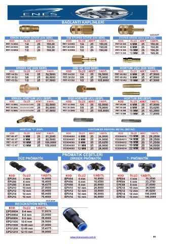 DÜZ PNÖMATİK DİRSEK PNÖMATİK T- PNÖMATİK