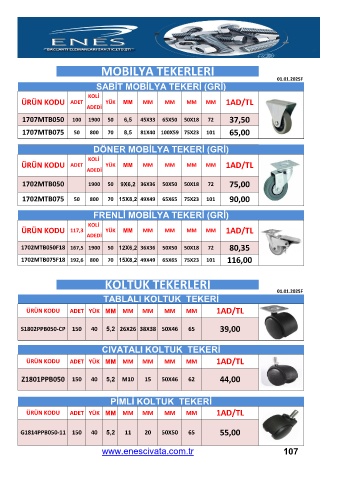 ÜRÜN KODU 117,3 YÜK MM MM MM MM MM 1AD/TL