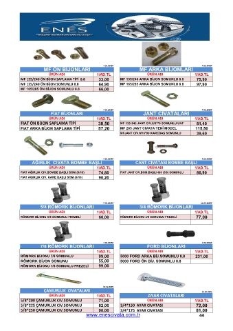 MF 135/240 ÖN BİJON SOMUNLU 8.8 64,90 MF 165/285 ARKA BİJON SOMUNLU 8.8 97,90