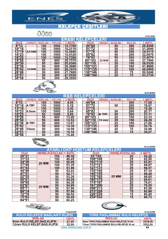 12mm RULO KELEP.BAĞ.KLİPSİ 32,00 12mm TORK PASLANMAZ RULA KELEPÇE 30 mt 1532,00