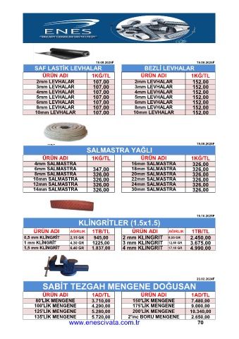 1 mm KLİNGRİT 4,30 GR 1225,00 3 mm KLİNGRİT 12,80 GR 3.675,00