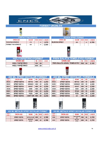 SPREY BOYA METALİK GRİ 400 12 3,700 9006 SPREY BOYA JANT METALİK 200 30 1,720