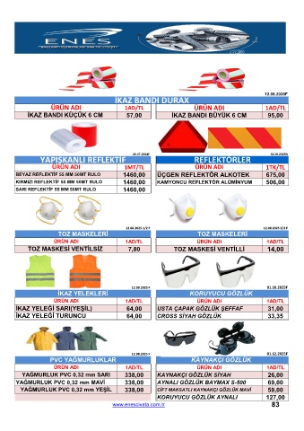 İKAZ YELEĞİ SARI(YEŞİL) 64,00 USTA ÇAPAK GÖZLÜK ŞEFFAF 31,00