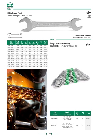 CODE mm mm mm mm mm g Ad. İki Ağız Anahtar Takımı (mm)