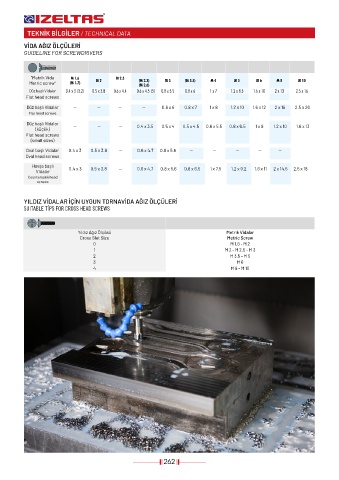 YILDIZ VİDALAR İÇİN UYGUN TORNAVİDA AĞIZ ÖLÇÜLERİ