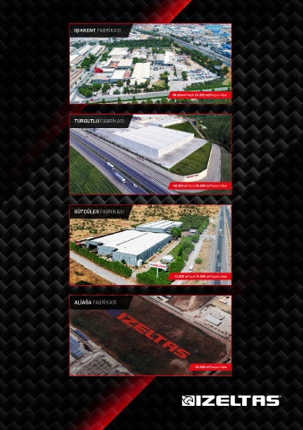 IŞIKKENT FABRİKASI 58.000 m Açık 24.320 m2Kapalı Alan 2 TURGUTLU FABRİKASI 40.000 m Açık 25.000 m Kapalı Alan 2 2 SÜTÇÜLER FABRİKASI 41.225 m Açık 14.050 m Kapalı Alan 2 2 ALİAĞA FABRİKASI 2 50.000 m Kapalı Alan