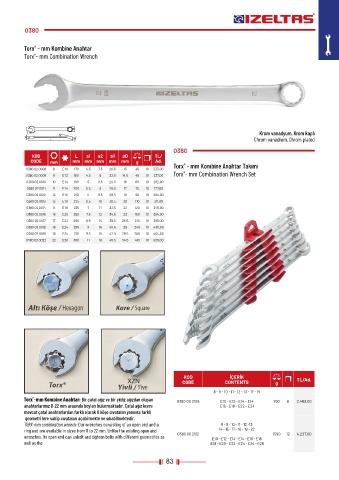 0380 02 0008 8 E10 170 4.5 7.5 20.5 13 45 10 233,00 Torx - mm Kombine Anahtar Takımı