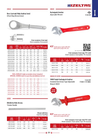 CODE mm mm mm g TL/Ad. Krom vanadyum, Krom kaplı, Kalın PVC izoleli