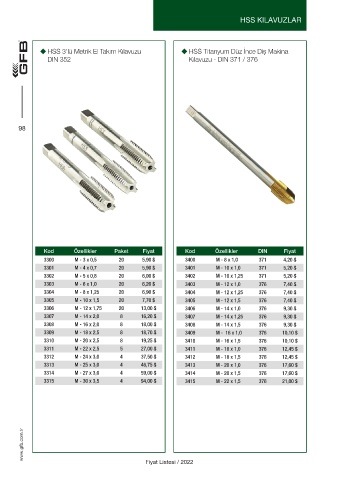 3305 M - 10 x 1,5 20 7,70 $ 3405 M - 12 x 1,5 376 7,40 $