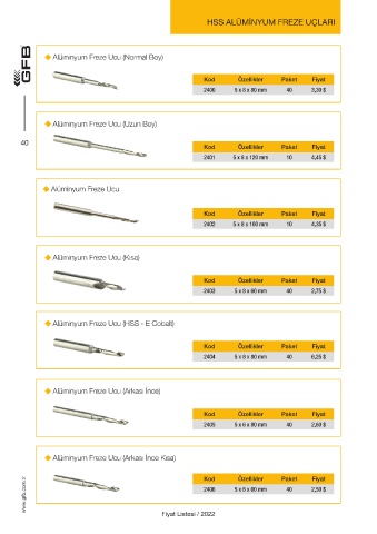 www.gfb.com.tr Fiyat Listesi / 2022 5 x 6 x 60 mm Paket 2,50 $