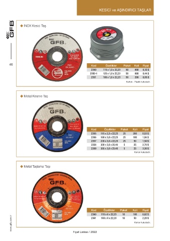 www.gfb.com.tr Fiyat Listesi / 2022 Karton kutudadır.