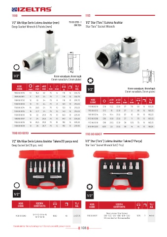 1/2” Altı Köşe Derin Lokma Anahtar (mm) TS ISO 2725 - 1 1/2” Star (Torx ) Lokma Anahtar