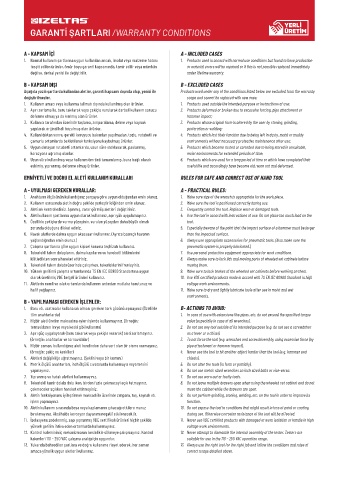 Aşağıda yazılı şartlarda kullanılan aletler, garanti kapsamı dışında olup, yenisi ile Products used under any of the conditions listed below are excluded from the warranty