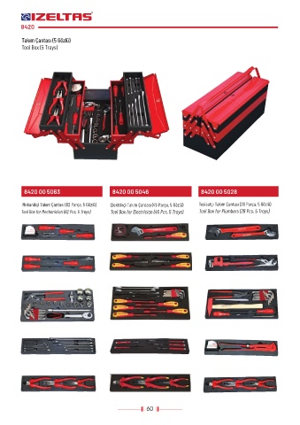 Tool Box for Mechanician (62 Pcs, 5 Trays) Tool Box for Electrician (45 Pcs, 5 Trays) Tool Box for Plumbers (28 Pcs, 5 Trays)