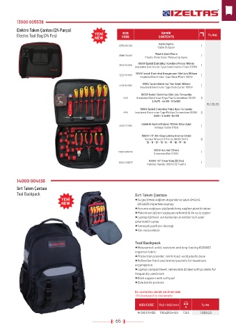 Electro Tool Bag (24 Pcs) YENİ CODE CONTENTS TL/Ad.