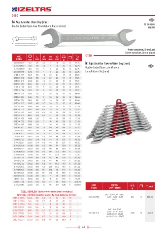 0130 01 0607 6x7 125 3.5 14 16 24 10 79,75 İki Ağız Anahtar Takımı Uzun Boy (mm)