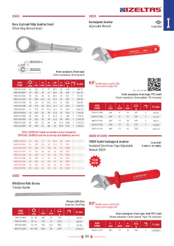 CODE mm mm mm g TL/Ad. Krom vanadyum, Krom kaplı, Kalın PVC izoleli
