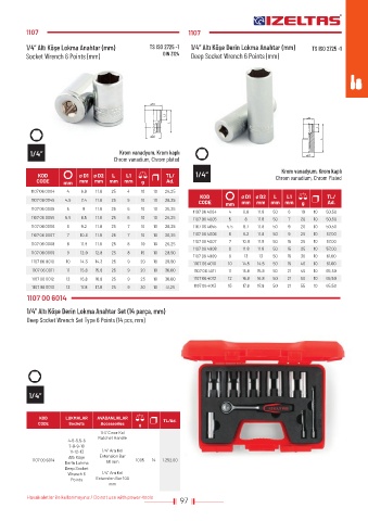 1/4” Altı Köşe Lokma Anahtar (mm) TS ISO 2725 -1 1/4” Altı Köşe Derin Lokma Anahtar (mm) TS ISO 2725 -1