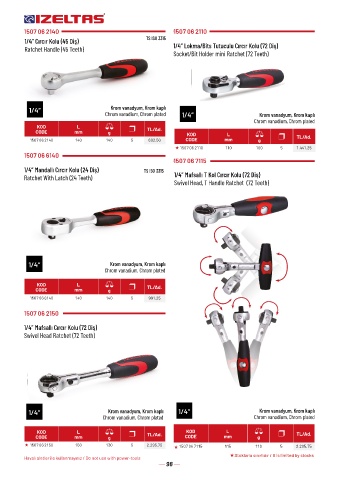 1/4” Mafsallı Cırcır Kolu (72 Diş)