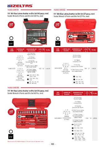 14000 005131 4 - 4.5 - 5 1/4" Derin Lokma 1450 48 4.491,75 14000 005132 13 - 14 590 27 1.957,25