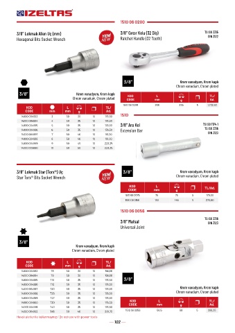 3/8” Lokmalı Allen Uç (mm) YENİ 3/8” Cırcır Kolu (32 Diş) TS ISO 3315