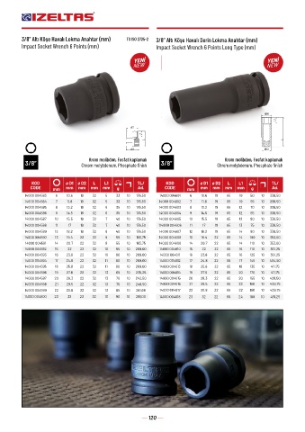 3/8” Altı Köşe Havalı Lokma Anahtar (mm) TS ISO 2725-2 3/8” Altı Köşe Havalı Derin Lokma Anahtar (mm)