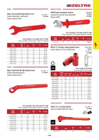 CODE mm mm g 1000V 1/2” Altı Köşe Lokma Anahtar (mm)