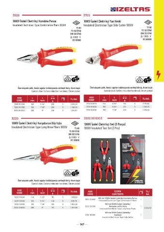 3220 13 6140 140 5 1/2" 110 5 1.051,00 160 mm 1000V İzoleli Elektrikçi Kombine Pense