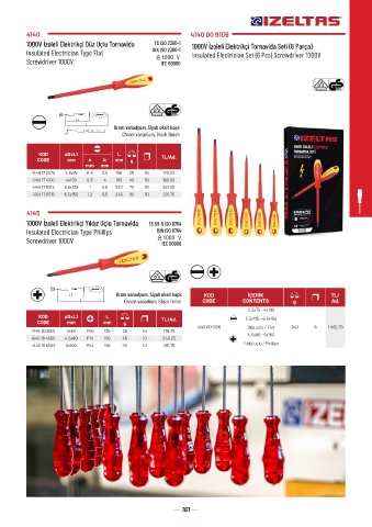 1000V İzoleli Elektrikçi Düz Uçlu Tornavida TS ISO 2380-1 1000V İzoleli Elektrikçi Tornavida Seti (6 Parça)