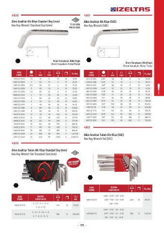 4900 22 0220 22 200 80 940 5 1.547,50 Allen Anahtar Takım Altı Köşe (SAE)