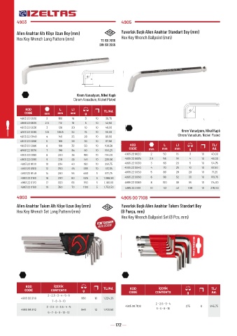 Allen Anahtar Altı Köşe Uzun Boy (mm) Yuvarlak Başlı Allen Anahtar Standart Boy (mm)