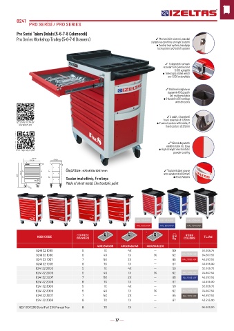 Pro Series Workshop Trolley (5-6-7-8 Drawers) 3 Merkezi kilit sistemi, mandal