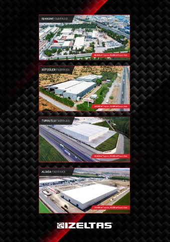 IŞIKKENT FABRİKASI 60.000 m Toplam, 25.000 m Kapalı Alan 2 2 SÜTÇÜLER FABRİKASI 40.000 m Toplam, 15.000 m Kapalı Alan 2 2 TURGUTLU FABRİKASI 40.000 m Toplam, 25.000 m Kapalı Alan 2 2 ALİAĞA FABRİKASI 50.000 m Toplam, 12.500 m Kapalı Alan 2 2