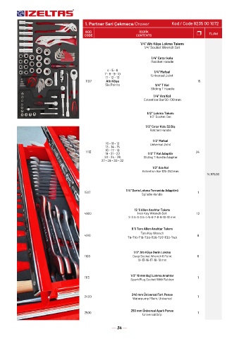 1. Partner Seri Çekmece/Drawer Kod / Code 8235 00 1072