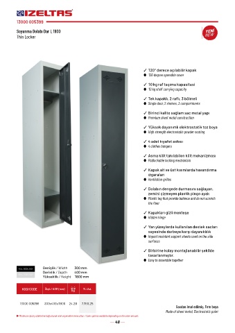 3 Tek kapaklı, 2 raflı, 3 bölmeli