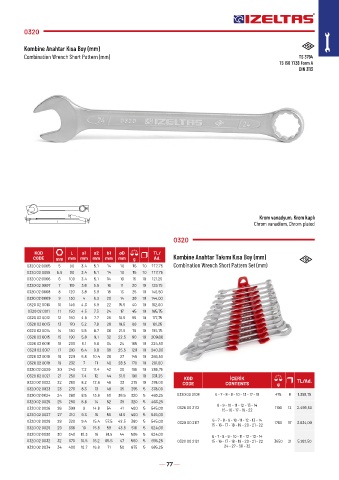 CODE mm mm mm mm mm mm g Ad. Kombine Anahtar Takımı Kısa Boy (mm)