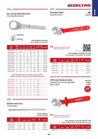 CODE mm mm mm g TL/Ad. Krom vanadyum, Krom kaplı, Kalın PVC izoleli