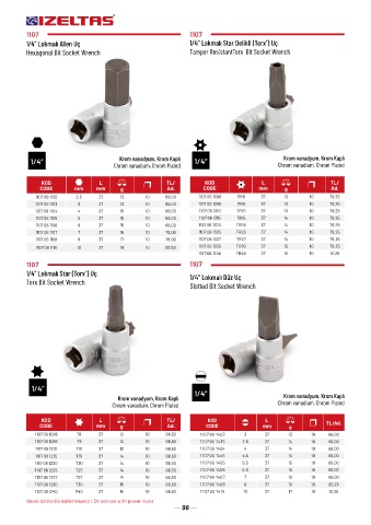 1/4” Lokmalı Allen Uç 1/4” Lokmalı Star Delikli (Torx ) Uç