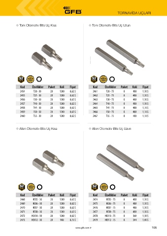 Tork Otomotiv Bits Uç Kısa Tork Otomotiv Bits Uç Uzun