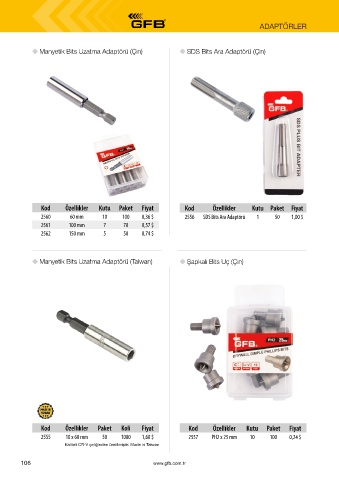 2560 60 mm 10 100 0,36 $ 2556 SDS Bits Ara Adaptörü 1 50 1,00 $