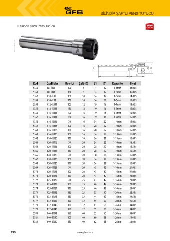 Kod Özellikler Boy (L) Şaft (D) L1 D1 Kapasite Fiyat