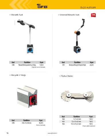 1380 Manyet k Komparatör Ay. 60 Kgs. 12,00 $ 1381 Un versal Manyet k Ayak 60 Kgf. 26,00 $