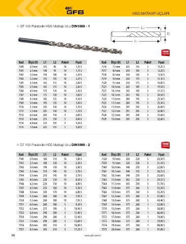 GT 100 Parabolik HSS Matkap Ucu DIN1869 - 1