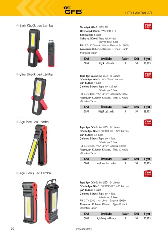 Gövde Işık Gücü: 5W LED 350 Lümen